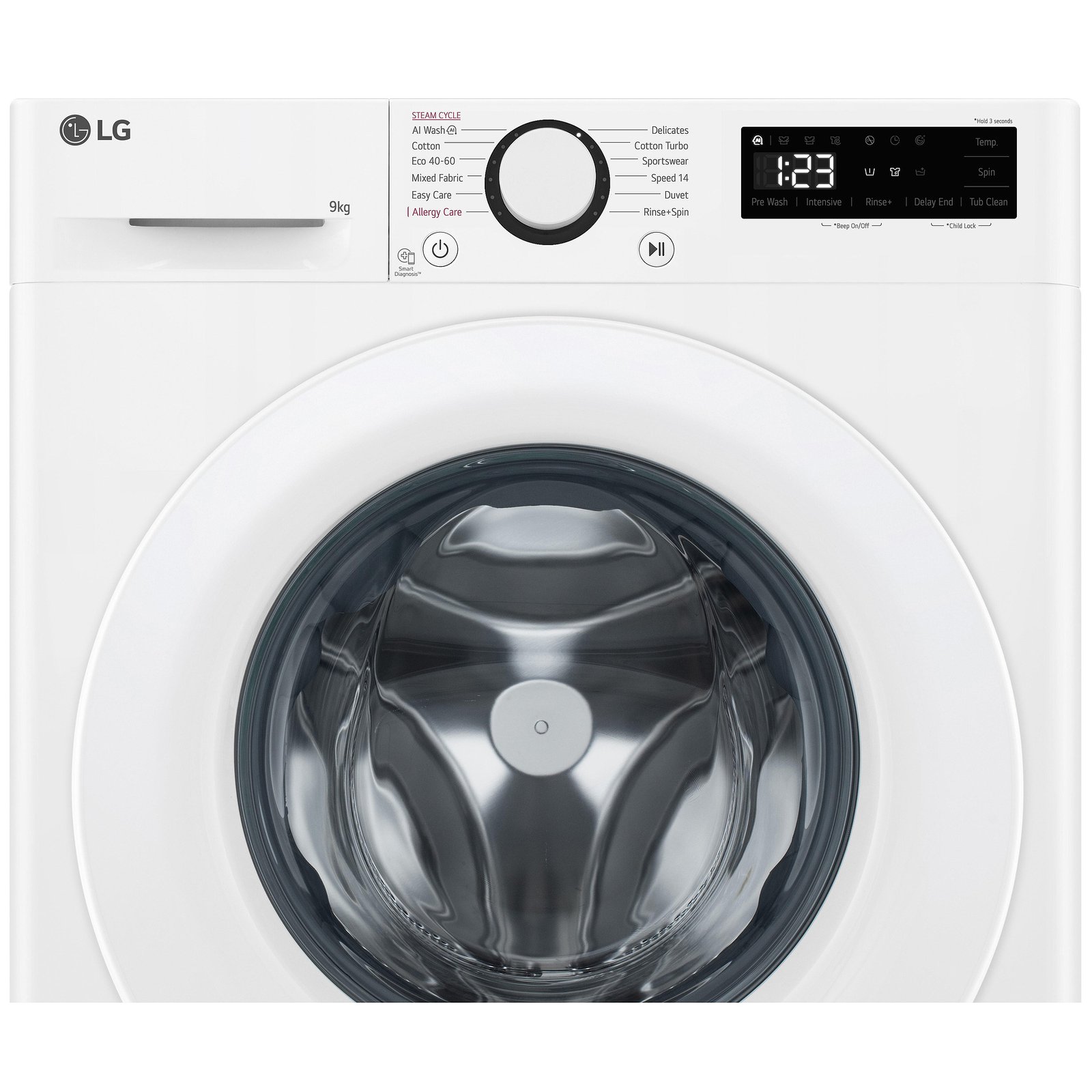 - Капацитет на пране от 9 кг, подходящ за по-големи домакинства или обемисти предмети.